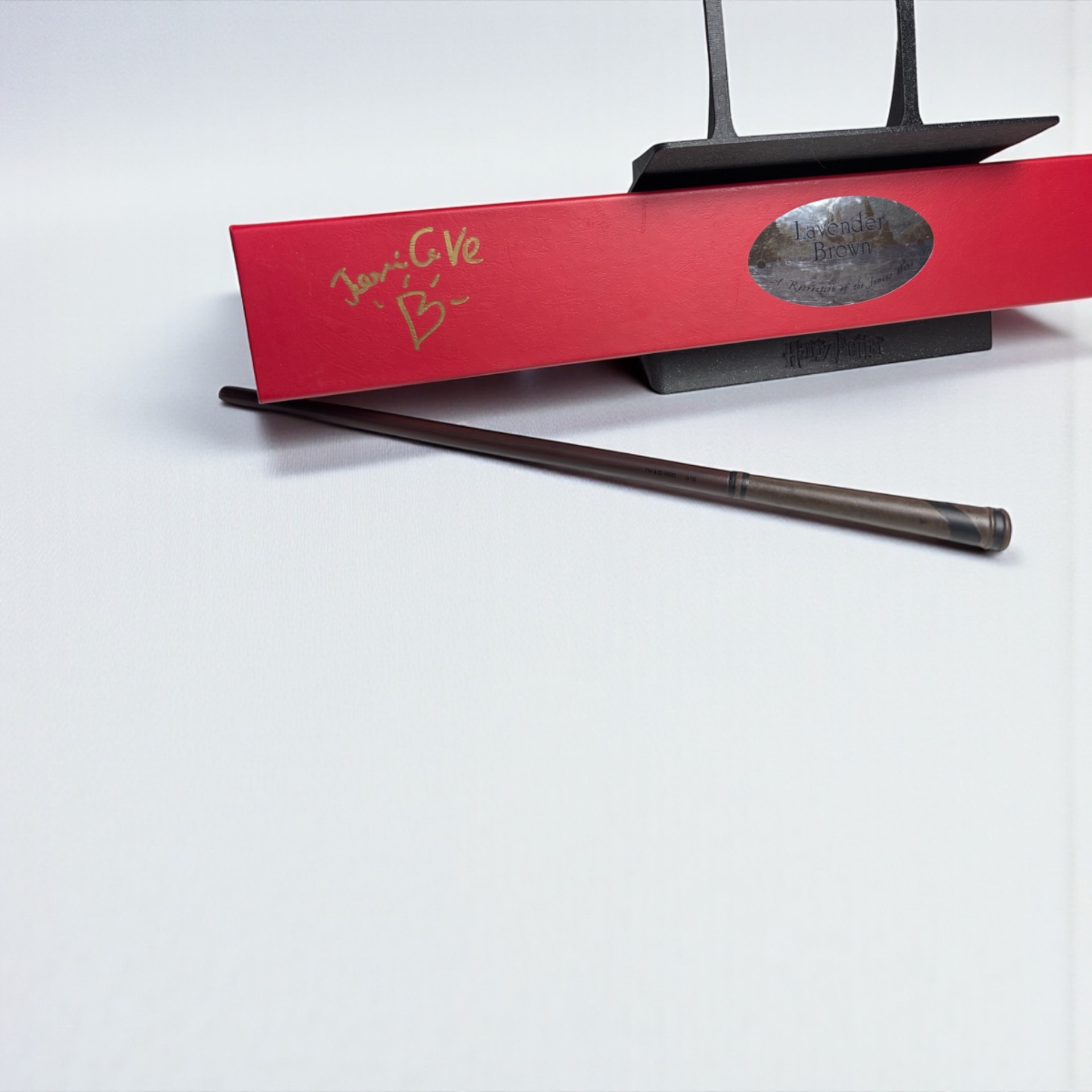 Podepsaná hůlka, která patří Levander Brown, kterou ztvárnila Jessie Cave ve filmu Harry Potter.